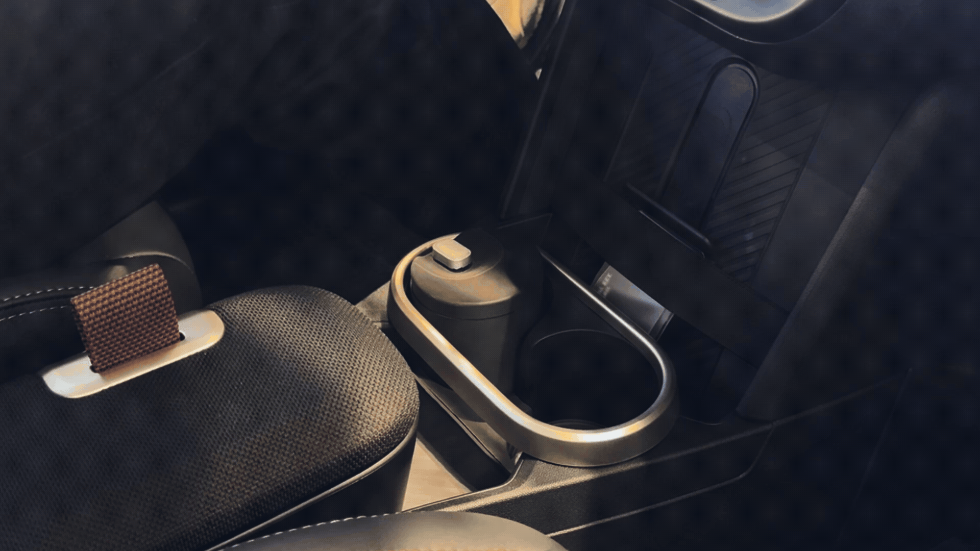 The swivel lid provides a seamless experience, as the user doesn't have set aside the lid in the tight confines of the car.